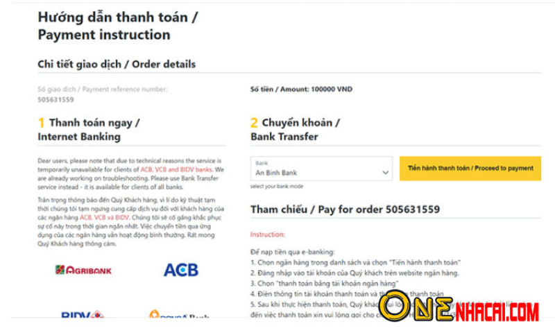 Bước 2: Sau khi người chơi nhận được giao diện mới hiển thị ra rất nhiều lựa chọn phương thức chuyển khoản, bạn nên đọc và lựa chọn thật kỹ phương thức phù hợp với mình nhé.